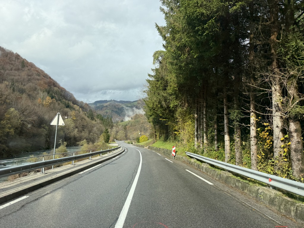 Nejvíc mě vadí spousta listí na okraji silnice a když začíná pršet a listí je mokré, no, nemám to ráda. Pořád se bojím, že nám někde v zatáčce na mokrém listí ustřelí kola. Maličké vesnice a miniaturní městečka.