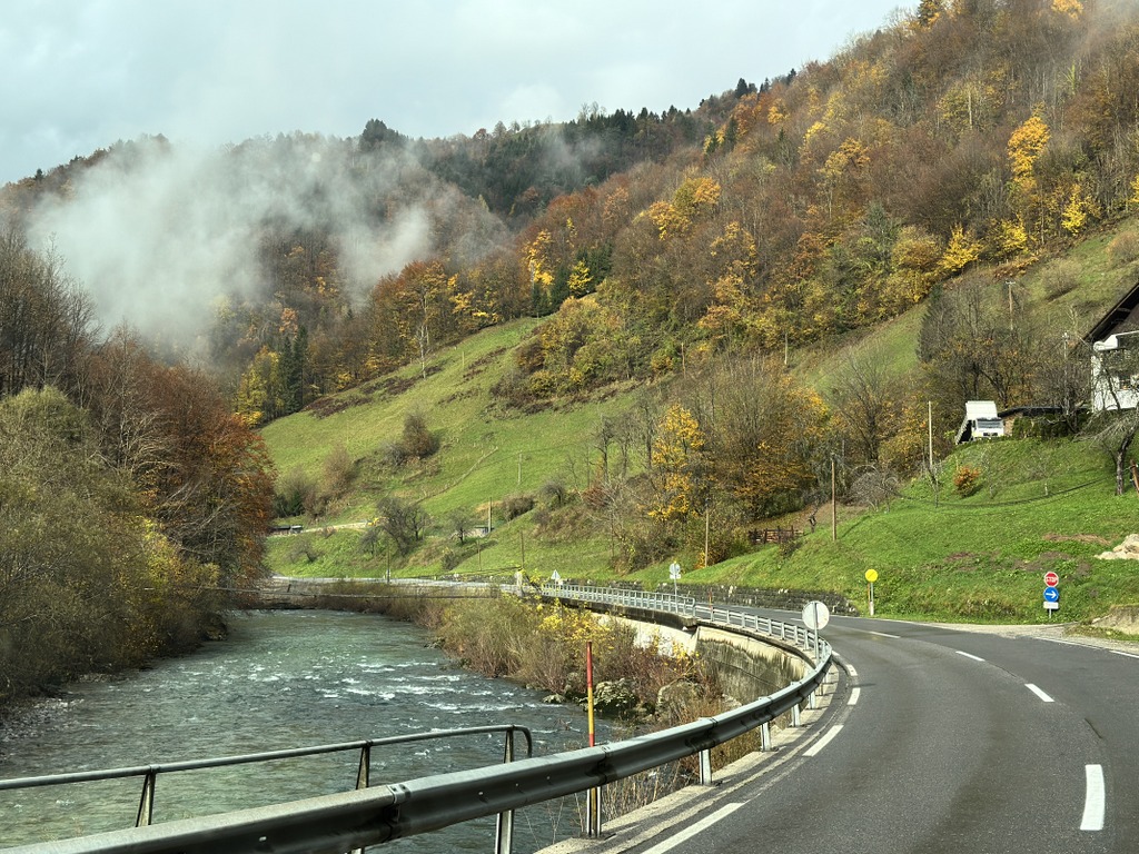 No a my jedeme Slovinskem, které je nádherné. Dopoledne je ještě hezky, a tak se příjemně fotí, ale hory před námi vypadají dost zlověstně.