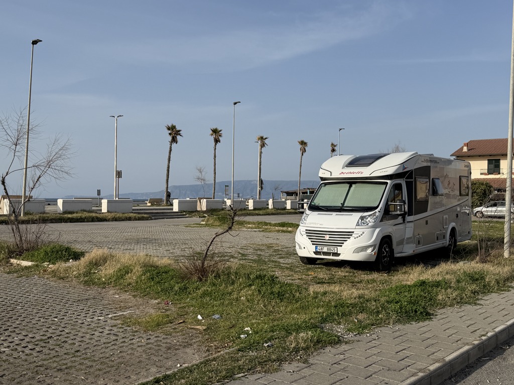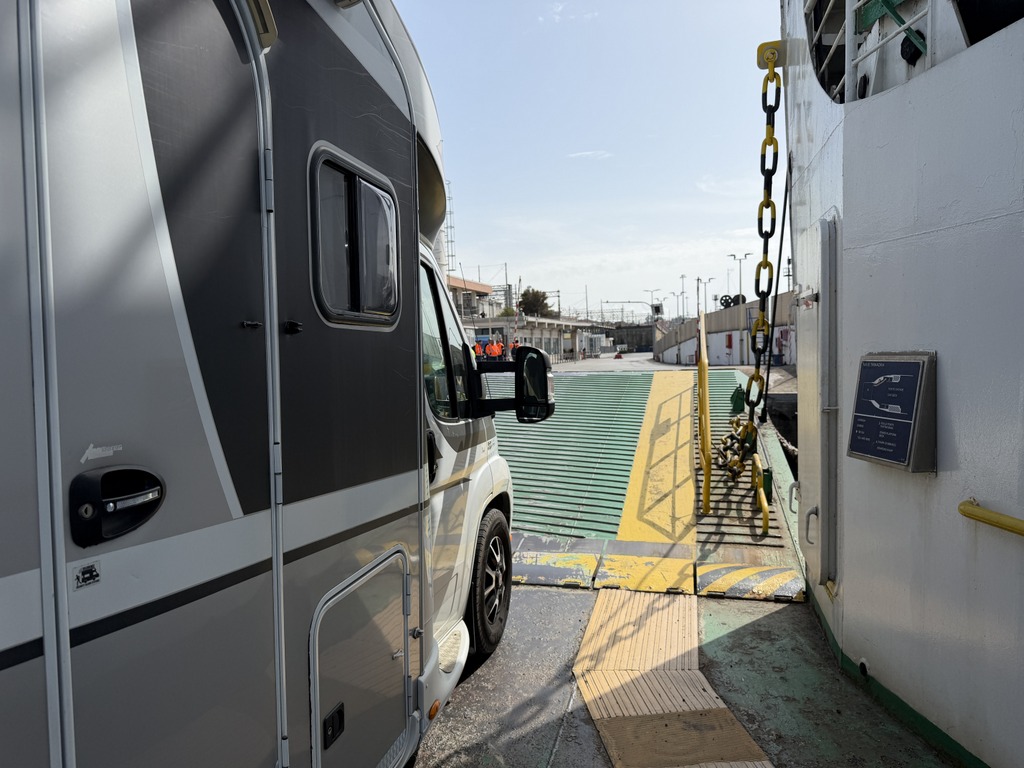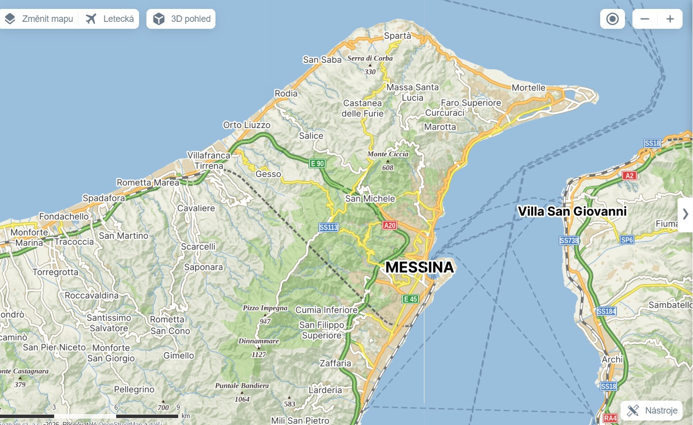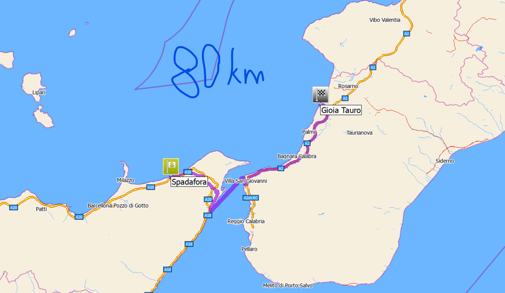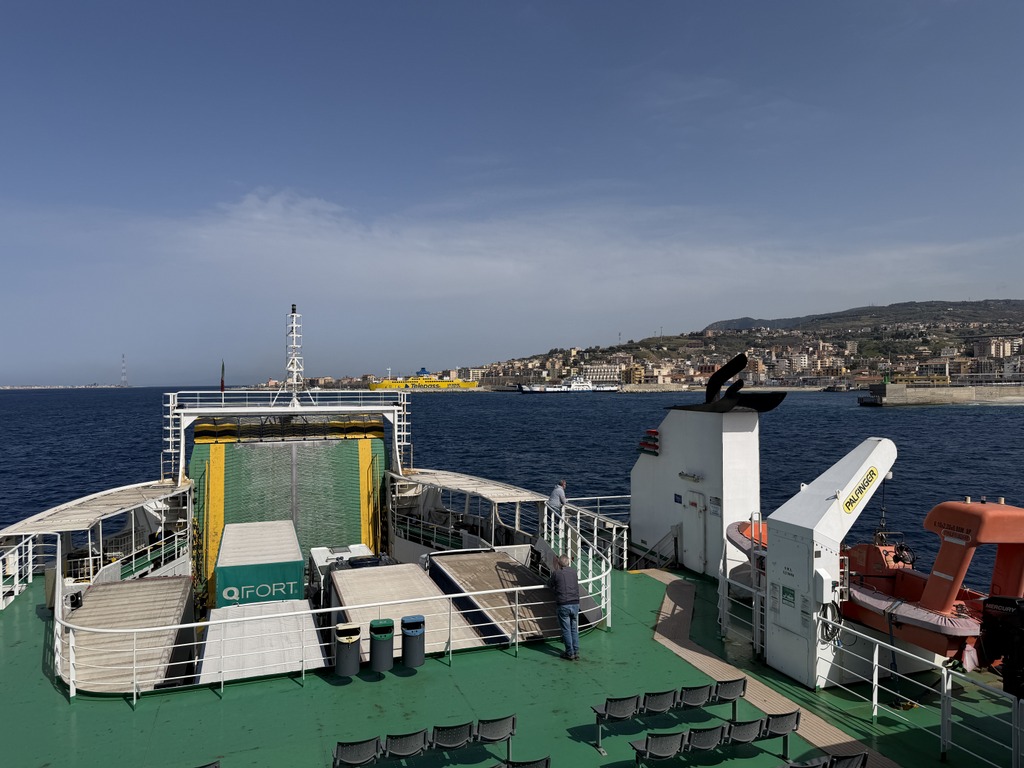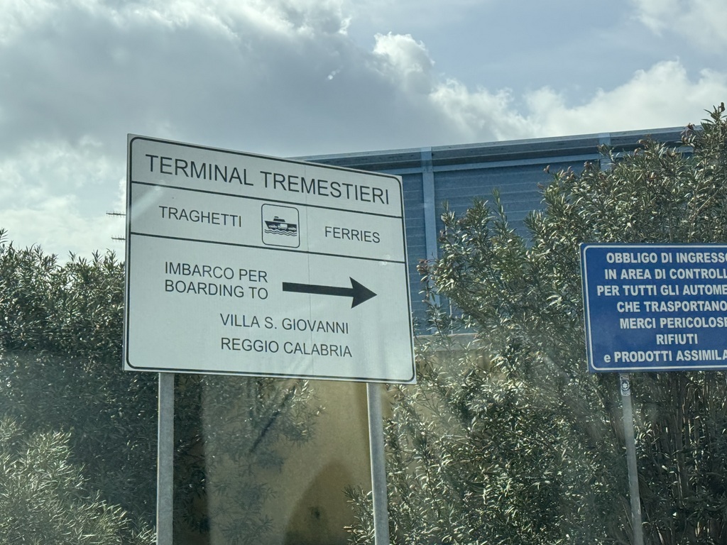 Hlavní přístav, kam míříme je zavřený. Byl hodně poničený bouří Harry, a tak nás na pevninu přepraví z přístavu, kam jsme omylem sem přijeli v prosinc. Musíme tedy skoro osm kilometrů za Messinu, teda spíše na okraj Messiny a tam jsou všechny trajekty na pevninu. Má to jeden háček.