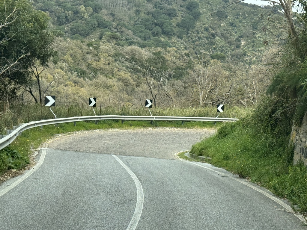Hurá na trajekt, jenže, před námi je poslední kousek Sicílie, ale pobřežní cesta je hodně zničená a už jsme jí jeli.