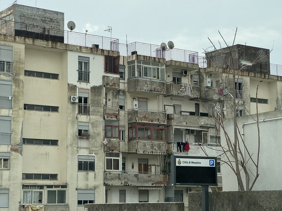 Velké paneláky, které jsou špinavé a tím, jak každý má balkon plný všeho možného, tak to působí děsně. Messina je taková klasika.