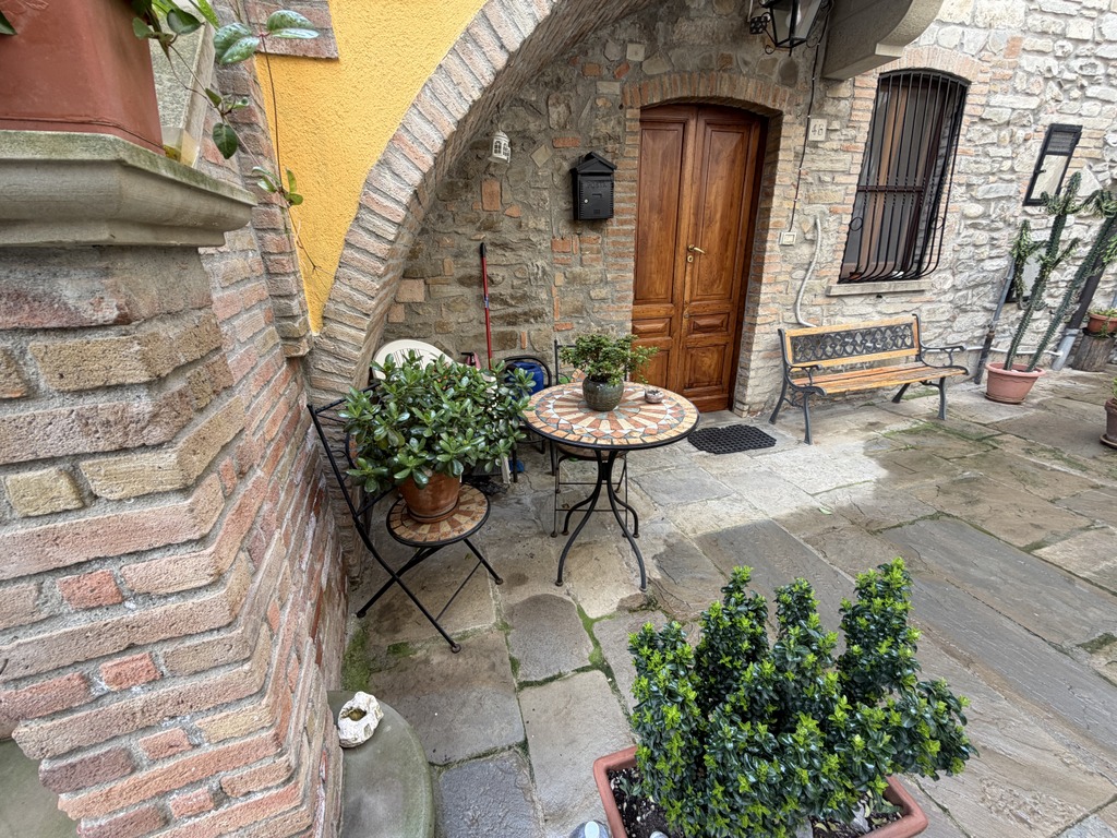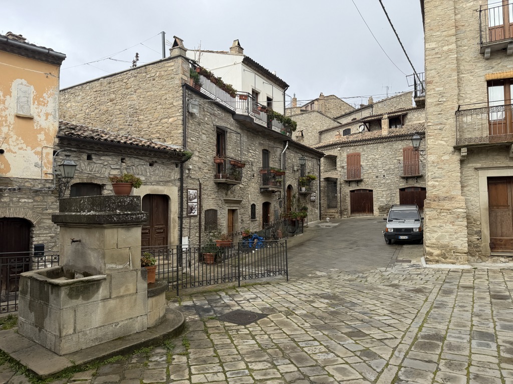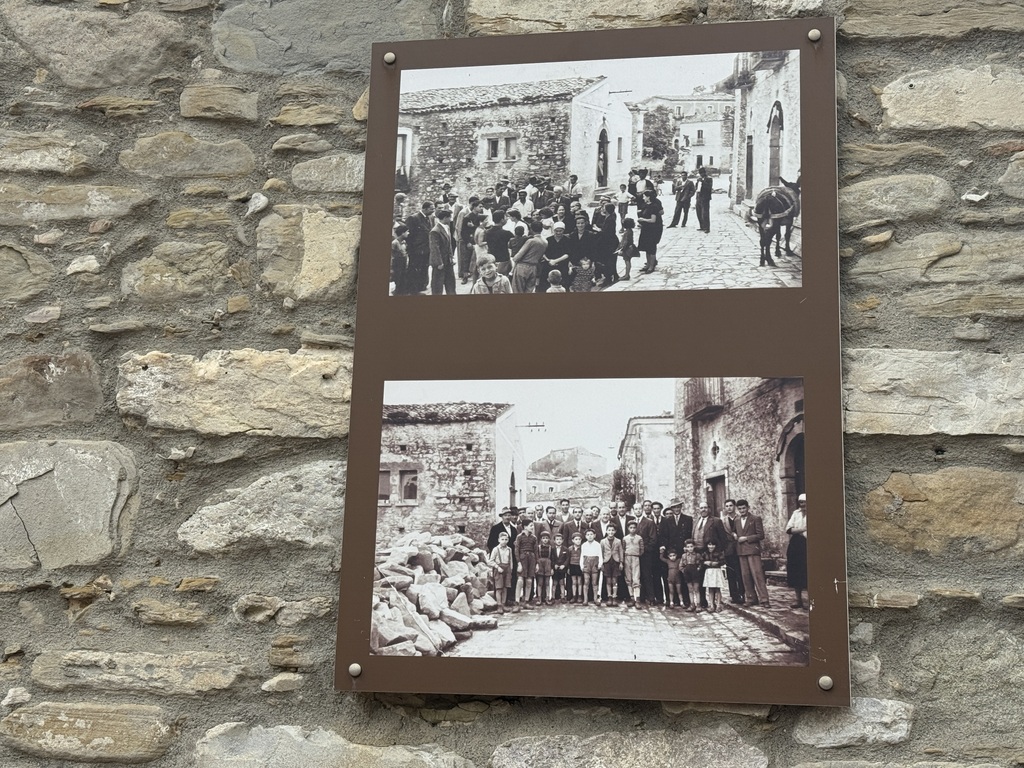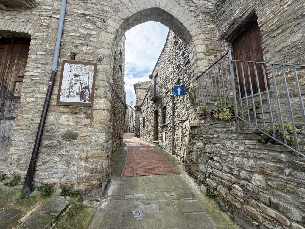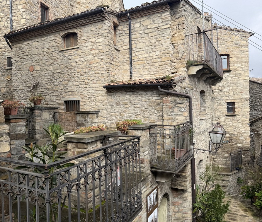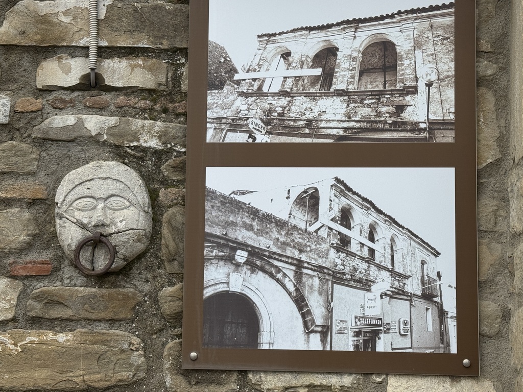„Paese delle case in pietra“ (Vesnice kamenných domů). Některé domy, které byly hodně poškozené jsou z kamene postavené a některé jsou jen kamenem obložené.