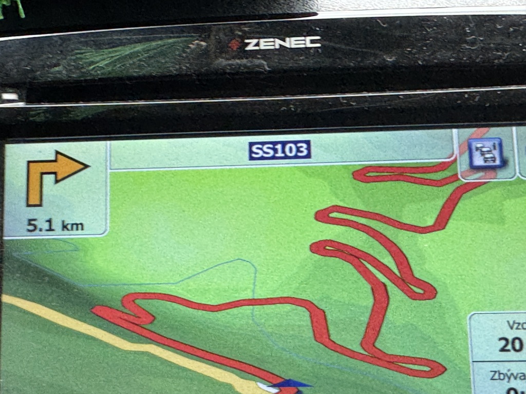 Naše je tentokrát jen SS 103 a je to přesně ten typ silnice, kdy si někdy říkám, panebože, co tady děláme. Zdenda to za jízdy trefně komentoval.