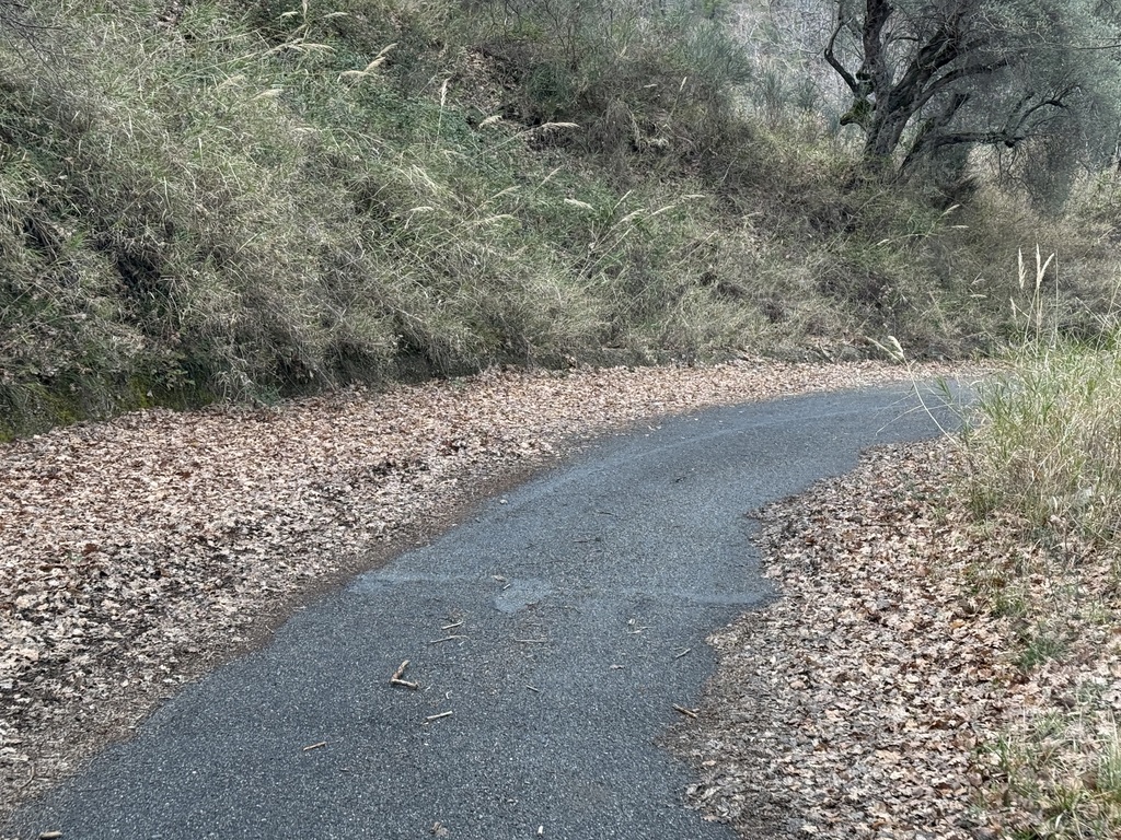 Vždycky jsme jí viděli odspodu, ale ne dneska. Když už vystoupáme klikaticí nahoru, tak tou samou klikaticí jen o kousek dál klesáme až k říčce, přes prastarý most a znovu se drápeme nahoru.