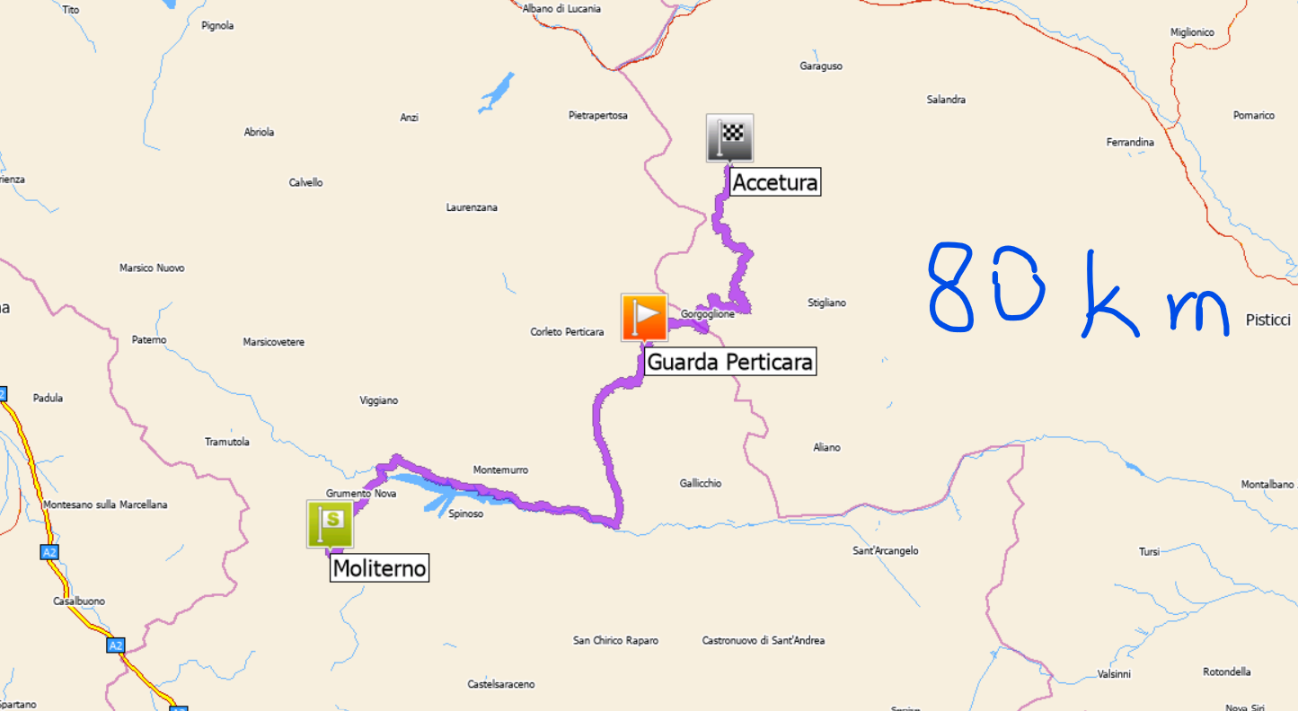 Dneska jedeme do městečka Guardia Perticara, kterou máme zhruba v polovině cesty.