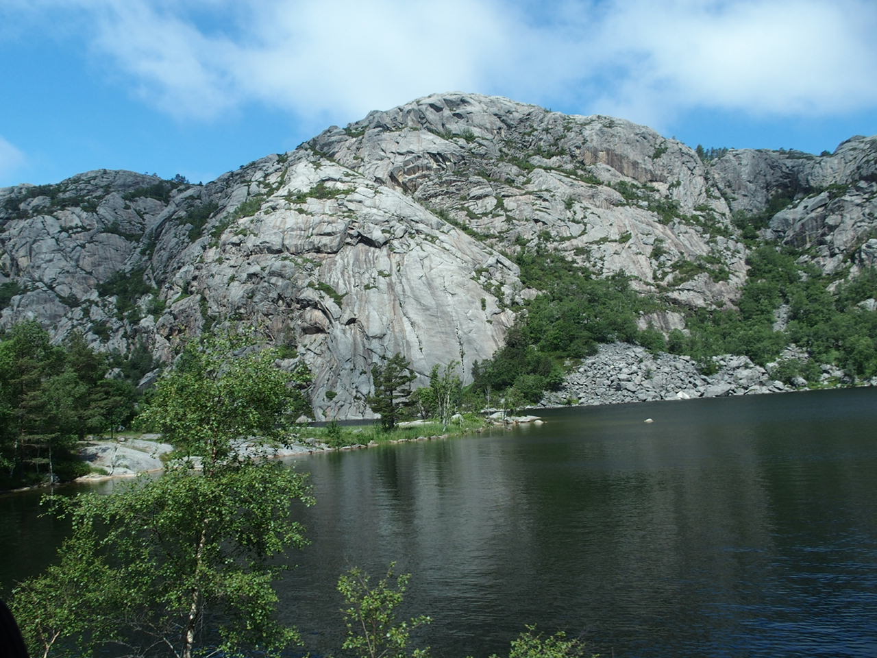 Na oběd se zastavujeme na jednom z mála větších parkovišť a Zdenda hned jde zkusit štěstí. Než jsem uvařila polívku a ohřála hotový oběd, pěkně si zarybařil. Po chvilce se u nás zastavily další bydlíky. Samý Němci. Tady je to opravdu hlavně o cestovatelích z Německa. O víkendu to byla síla cestovatelů v bydlíkách z Norska. Měli jsme pocit, že snad každý druhý Nor vlastní bydlík. Ale pozor, vesměs velmi zánovní nebo nové. Velmi málo starších modelů. Než jsme se nadáli, stojíme sice jako první, ale za námi je už pět bydlíků a jen tak tak se vejdou na parkoviště. Další projíždějí okolo, sondují situaci, a protože už se nevejdou, jedou dál. Všichni obědváme a jedeme dál. Je to teda síla. Ještě jsme nepotkali ani jednoho Čecha, tak statečně hájíme naše barvy sami a v těžké přesile.