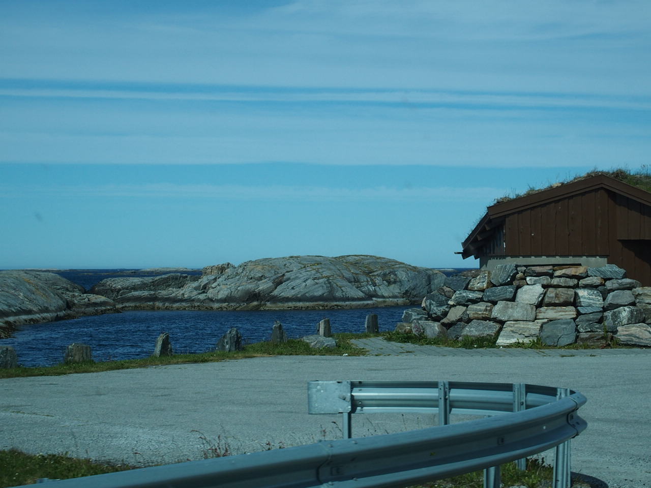 Úmyslně se vyhýbáme trajektům a celou oblast objíždíme hezky po suchu. Není to nijak hrozivá zajížďka, ale krásná cesta stojí za trochu času. Cestou míjíme několik parádních parkovišť a vybíráme si to správná a nejhezčí na oběd.