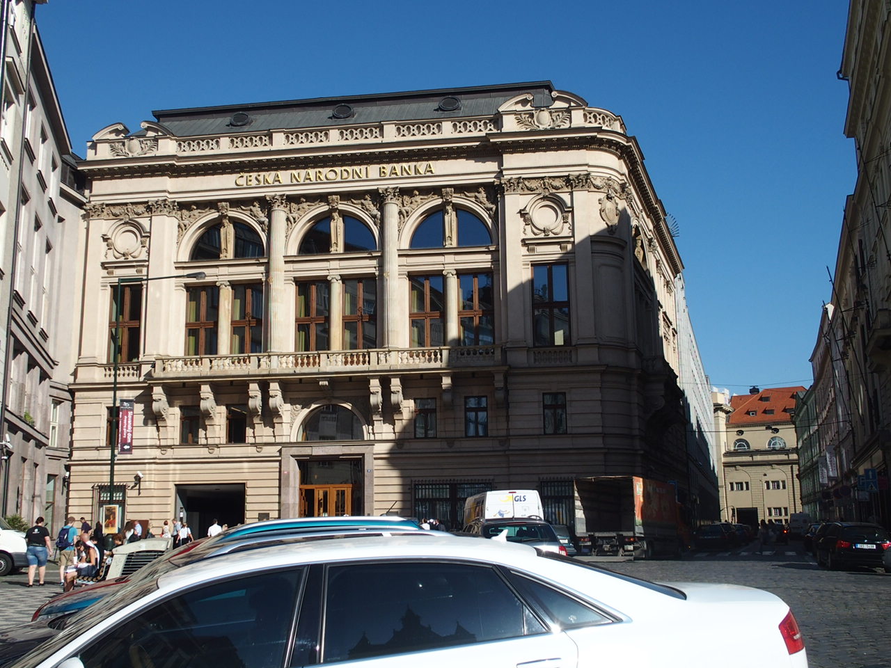 Ve spodní části Václavského náměstí uhneme do Jindřišské ulice a už máme před sebou krásnou Jindřišskou věž a hned za ní je mohutná budova České národní banky.
