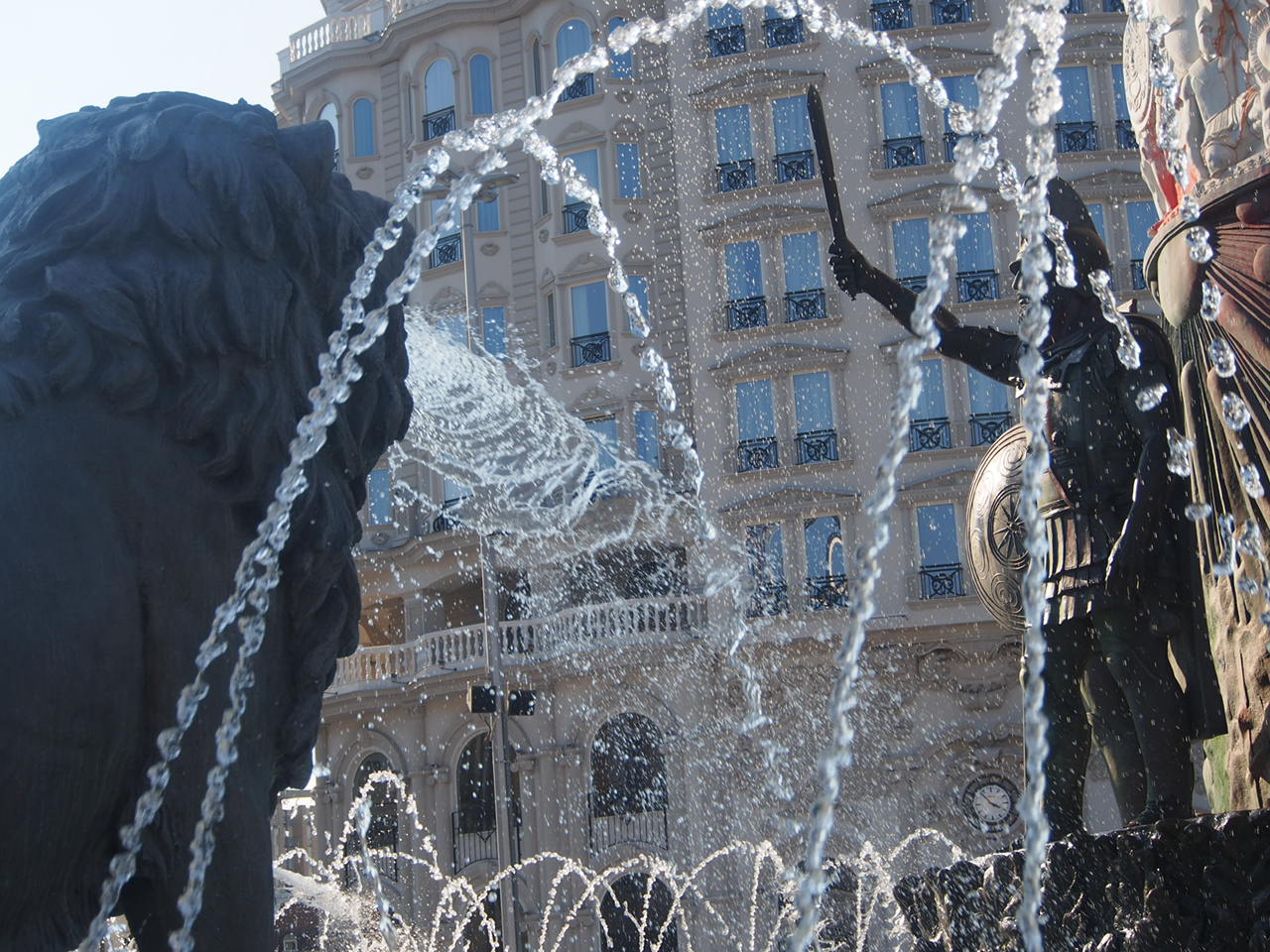 Socha je na monumentálním podstavci a pod kterým je několik soch vojáků a to vše je obklíčeno lvi, kteří chrlí vodu. Nádhera. Jen je škoda, že i tady jsou místní debilové, kteří se vyžívají v házení, asi plechovek barvy na sochy a budovy. Jsou to idioti.