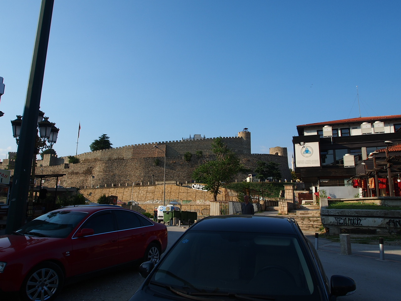 Nad námi se tyčí trosky Skopské pevnosti, tam také míříme. Musím říct, že v Skopje je obrovská rozestavěnost, spousta nových domů spěje k dokončení nebo je ve fázi velké rozestavěnosti, všude jsou různá lešení a vehementně se opravují fasády a nebo rovnou celé domy.