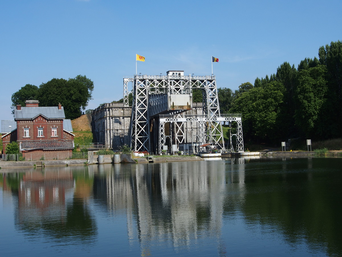 Tak, sundáváme kola z nosiče, bereme svačinku na cestu, zásobu pití, protože je horko a můžeme vyjet. Celá trasa je velmi krátká, jen 10 km tam a 10 zpět, ale pokud to vezmeme ještě zajížďkou na další zajímavost a tou je veliký, vysoký lodní výtah mezi městy Strépy a Thieu pro určený především pro průmyslovou přepravu.