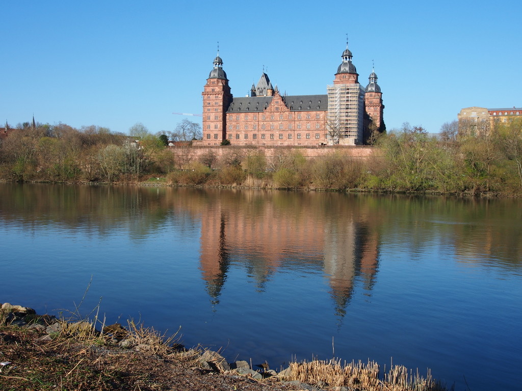 Docela mě těší, že nejsme tu sami, že nejsme sami, kdož šetří za placená stání. Zámek Zámek Johannisburg stojí na terase nad řekou Mohan a jakoby z boku městečka Aschaffenburg. Je to tu hlavní turistická atrakce oblasti, a tak se samozřejmě jdeme na zámek podívat.