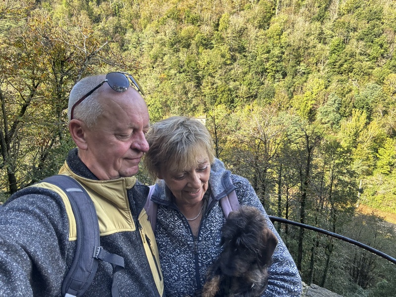 Naše parkoviště se začíná pomaličku plnit. Tak, je neděle a krásný den k tomu. Jdeme příjemnou cestou lesem k mostu nad údolím. Je to moc hezká stavba. Včera jsme měli most v Millau a dneska další most v Mazamet, kde jsme přenocovali.