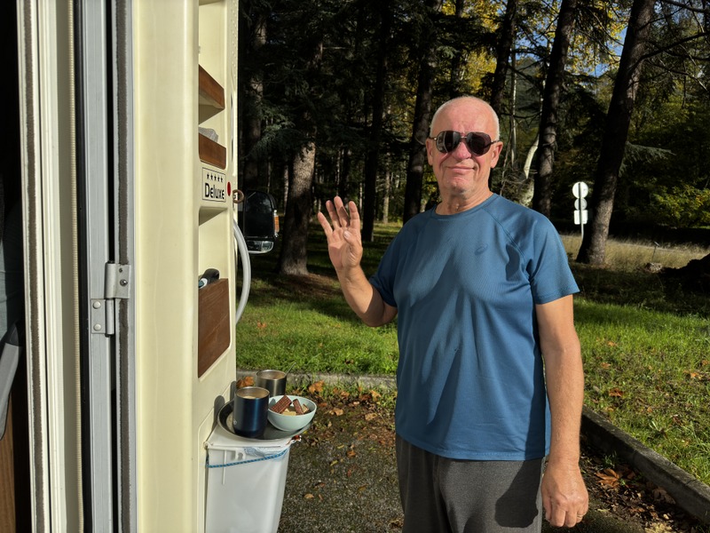 Ale pokud ten čas máme, tak dát si kávičku o třetí uprostřed předhůří Pyrenejí nemá chybu. Protáhneme si nohy, Dyk se proběhne, nadýcháme se čerstvého voňavého vzduchu a můžeme jet dál.