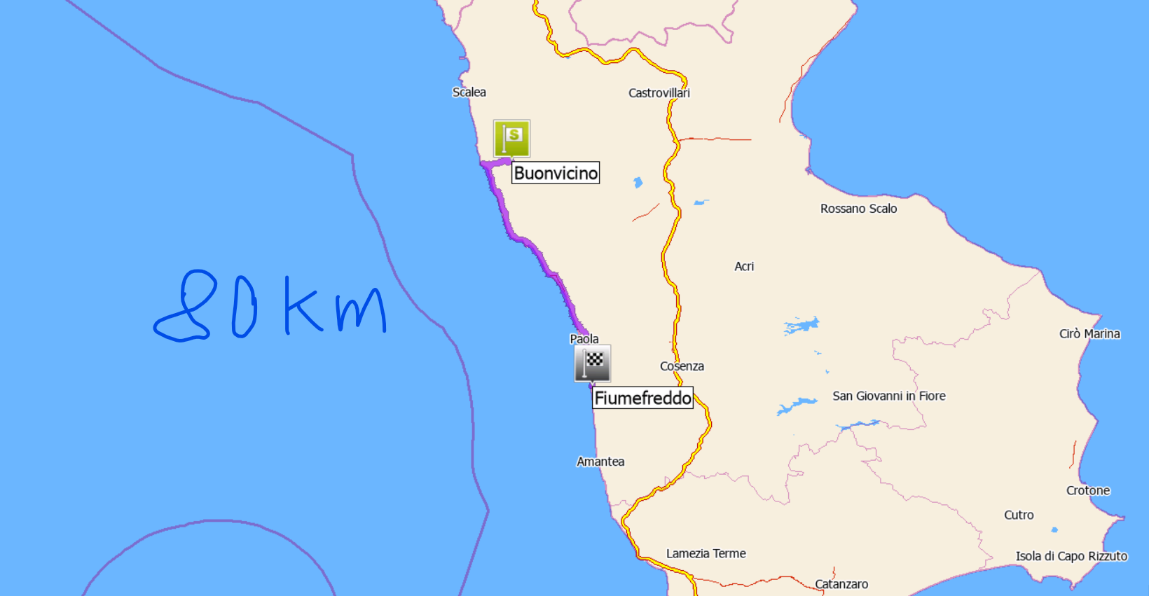 Odjíždíme z překrásného, úchvatného místa, nádvoří hradu D´Avalos a rádi bychom jeli aspoň trochu přírodou, ale počasí nám moc nepřeje a zrovna tak tady bychom museli hodně do vnitrozemí, což se nám na druhou stranu moc nechce.
