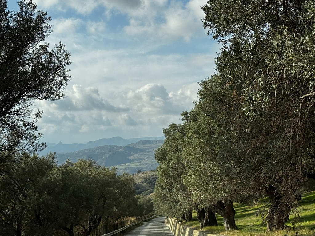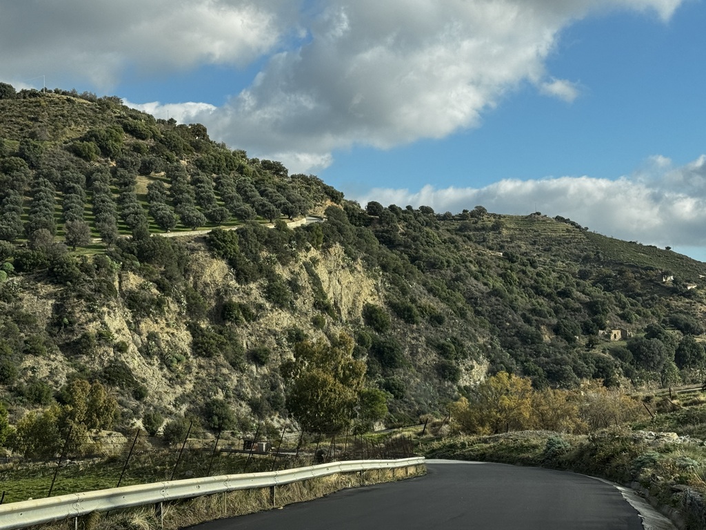 Začínáme pomalu padat k moři a dostali jsme se do oblasti, kde pěstují stromy s jedlými kaštany. Ohromné sady stromů jsou všude kolem nás.