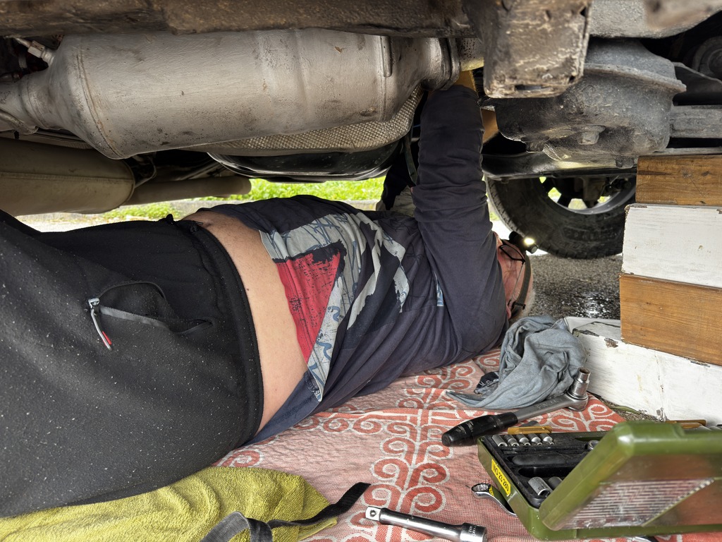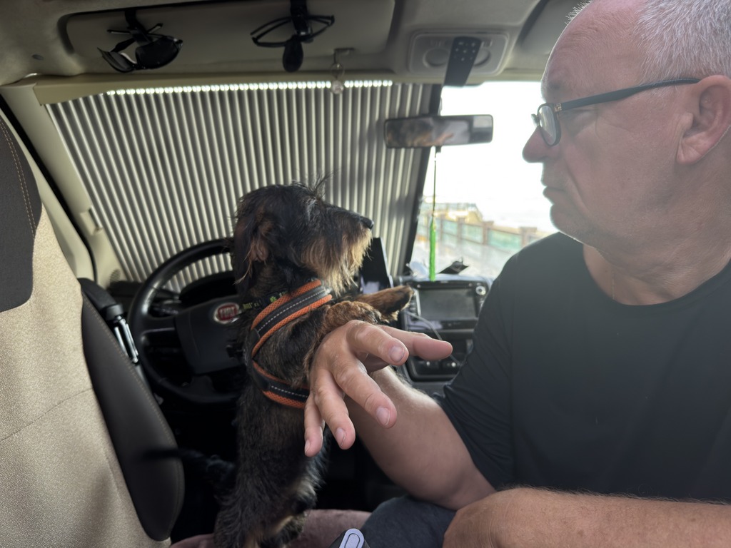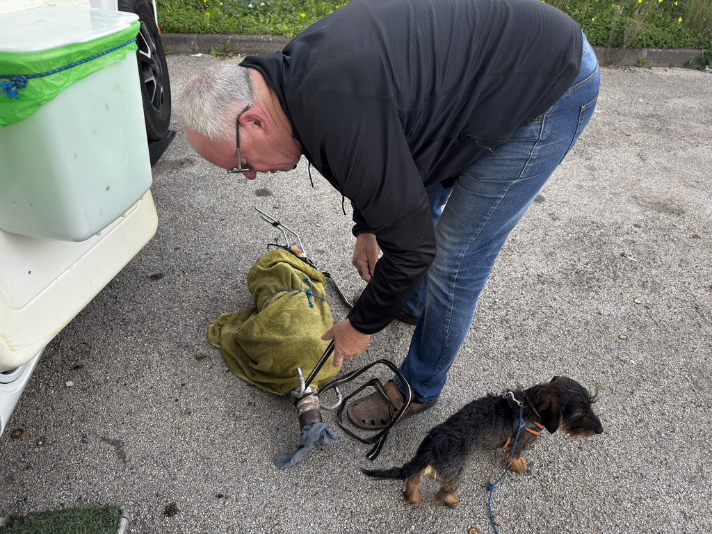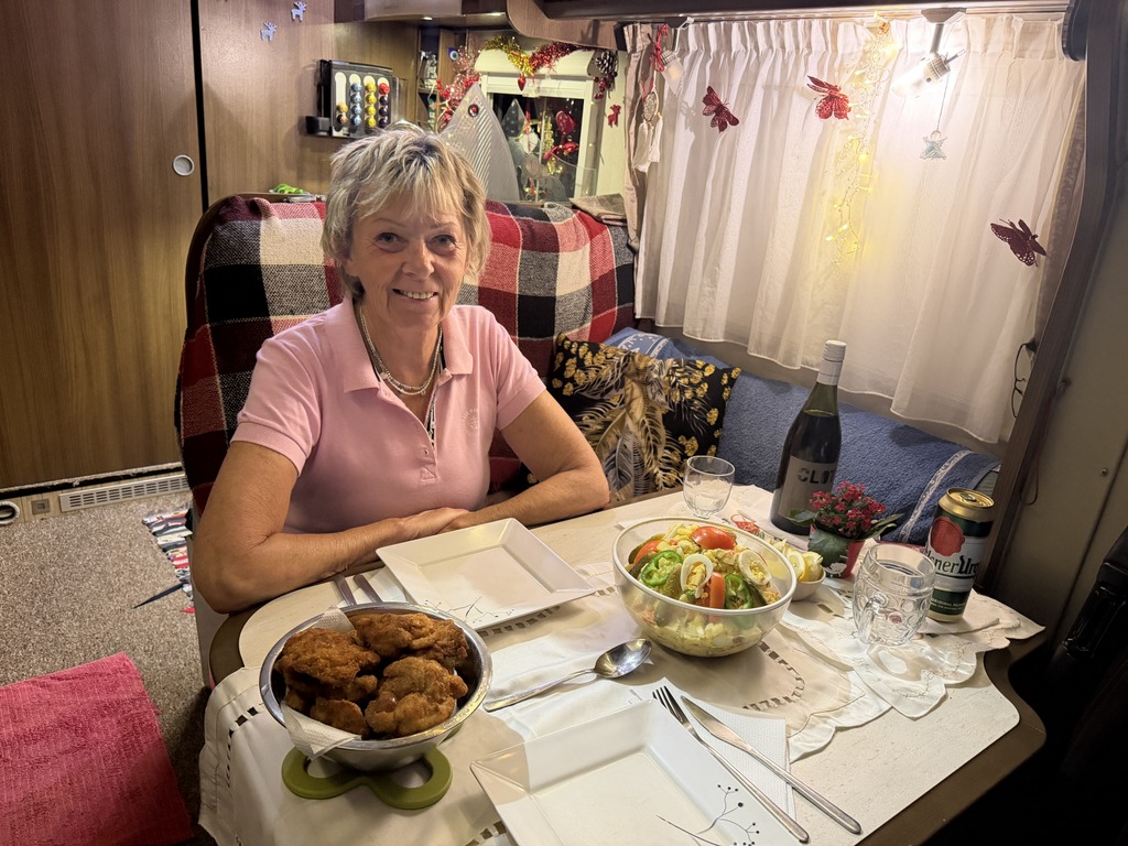 No, a protože je tady hezky, tak tu ještě jeden den zůstaneme. Okolo nás jsou jen rybáři, kteří ráno přijedou pak odjedou a prakticky parkoviště je jen pro nás. Letní domky jsou prázdné a nikomu tady nepřekážíme. Kousek vedle je veliká pláž a na sluníčko si můžeme dát křesílka, já si mohu zacvičit, Zdenda zarybařit a co víc si přát.