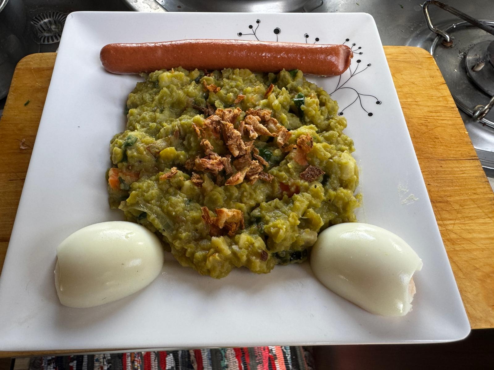 Tak jsem dala hovězí do papiňáku, což by fajnšmekři zavrhli, a k tomu jsem udělala domácí nudle. Z jedno vajíčka, a i tak těsto musím válet nadvakrát.