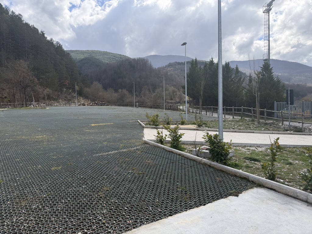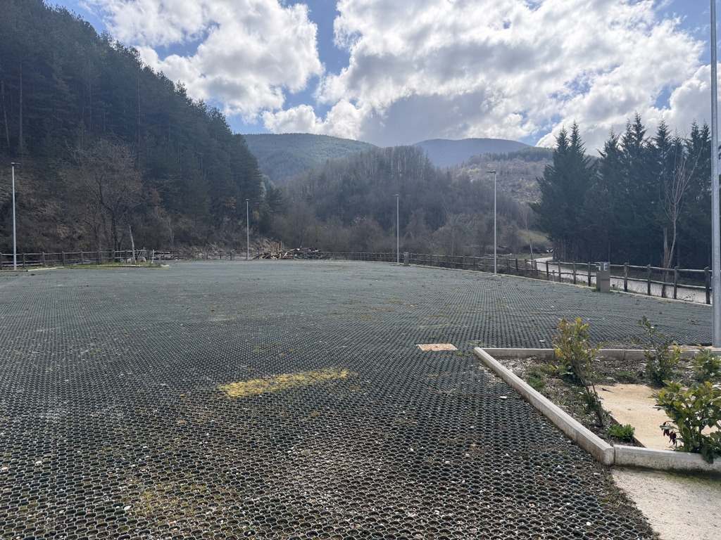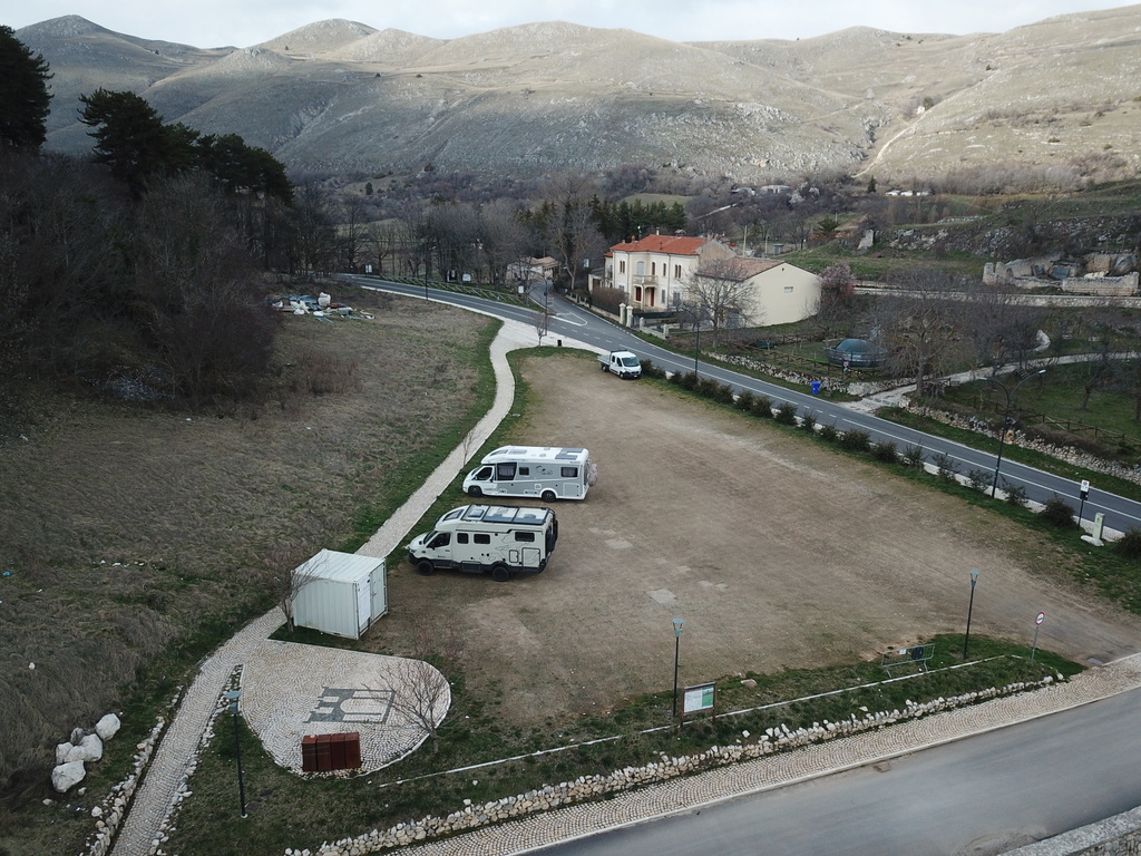 Maličké městečko a je tu stání pro 30 obytek určitě a nikde nikdo. Zase jsme na stání sami.