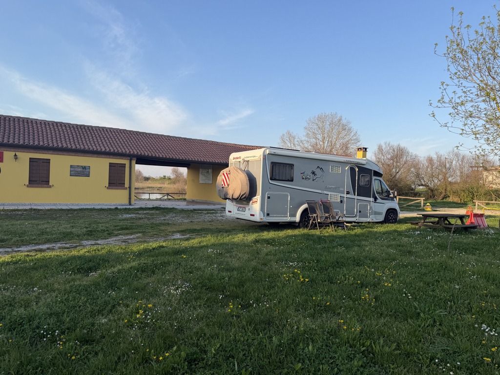 Zrovna včera jsme stáli na dalším stání pro obytná auta, které město pro nás vybudovalo s veškerým komfortem.