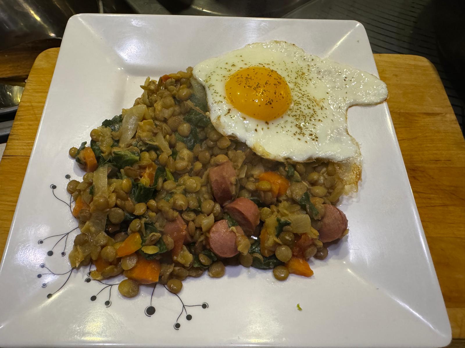 Občas je to mžik. My máme rádi čočku na talíři spíše sypací. No a na závěr můžeme přidat vařené vajíčko, volské oko, okurku, posypat smaženou cibulkou a tak podobně.