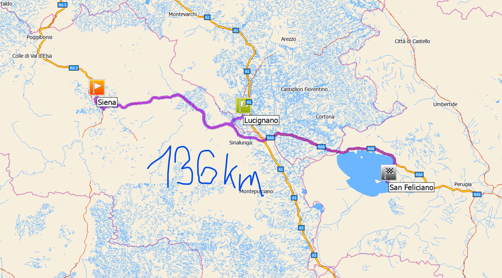 Máme to skoro 2 km, něco po uličkách a budeme tam zase za pár kilometrů. Nicméně, město Siena je úplně, diametrálně jiné, než jsme se včera namlsali v Lucignanu.