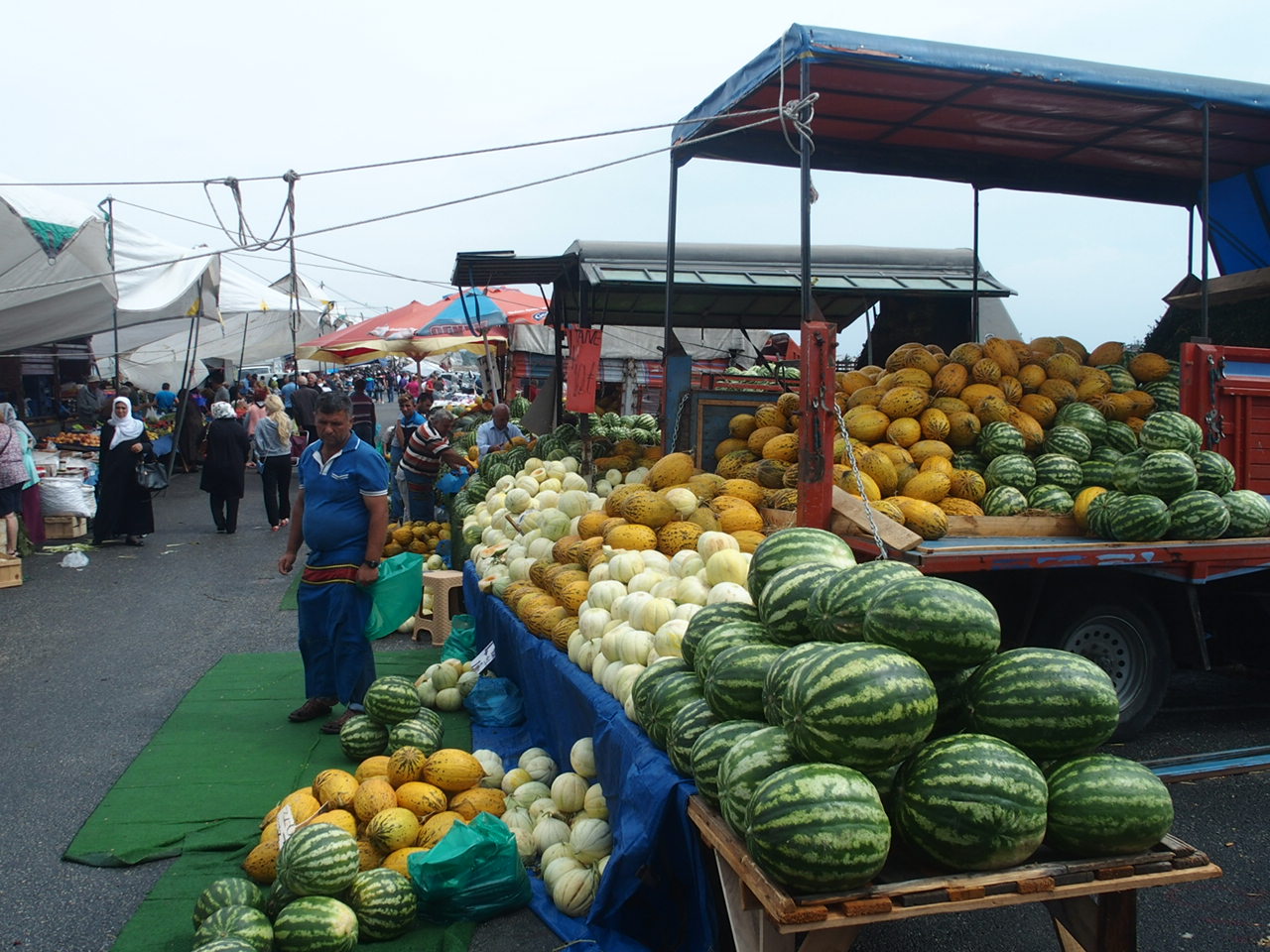 Jako pozornost pana majitele jsme dostali několik jejich čajů zadarmo. Jinak stojí 1 Tl, ale seděli jsme poměrně dlouho, než jsme dali tři dny do stránek a tak, abychom neseděli jen na prázdno, objednali jsme si čaj. V maličké skleničce neskutečně silný a dobrý. No a když jsme se konečně zvedli k odchodu a Zdenda šel platit, tak ty čaje byla nakonec pozornost podniku a platili jsme jen jídlo. Mimochodem, vrátím se ještě k úmyslu zakoupit si oběd v potravinách, salámy mají dost nechutné a ošklivé a drahé. Alespoň co jsme při zimní cestě zkusili, nám vůbec nechutnaly. Připadalo mě, že jím papír s rozemletým masem a moukou. Salámy tak nějak neumí, ale zato chleba mají absolutně bezkonkurenční, pokud je čerstvý z pekárny a zeleninové trhy nemají chybu. Hned jsme si koupili kýbl bílého jogurtu 2,5 kg za 48,-Kč. Jogurt je takové konzistence, že v něm stojí lžíce a to je ten nejlevnější z nabídky. Večer, když nás honí mlsná, miska jogurtu se lžící marmelády, tak to je lahodná záležitost.